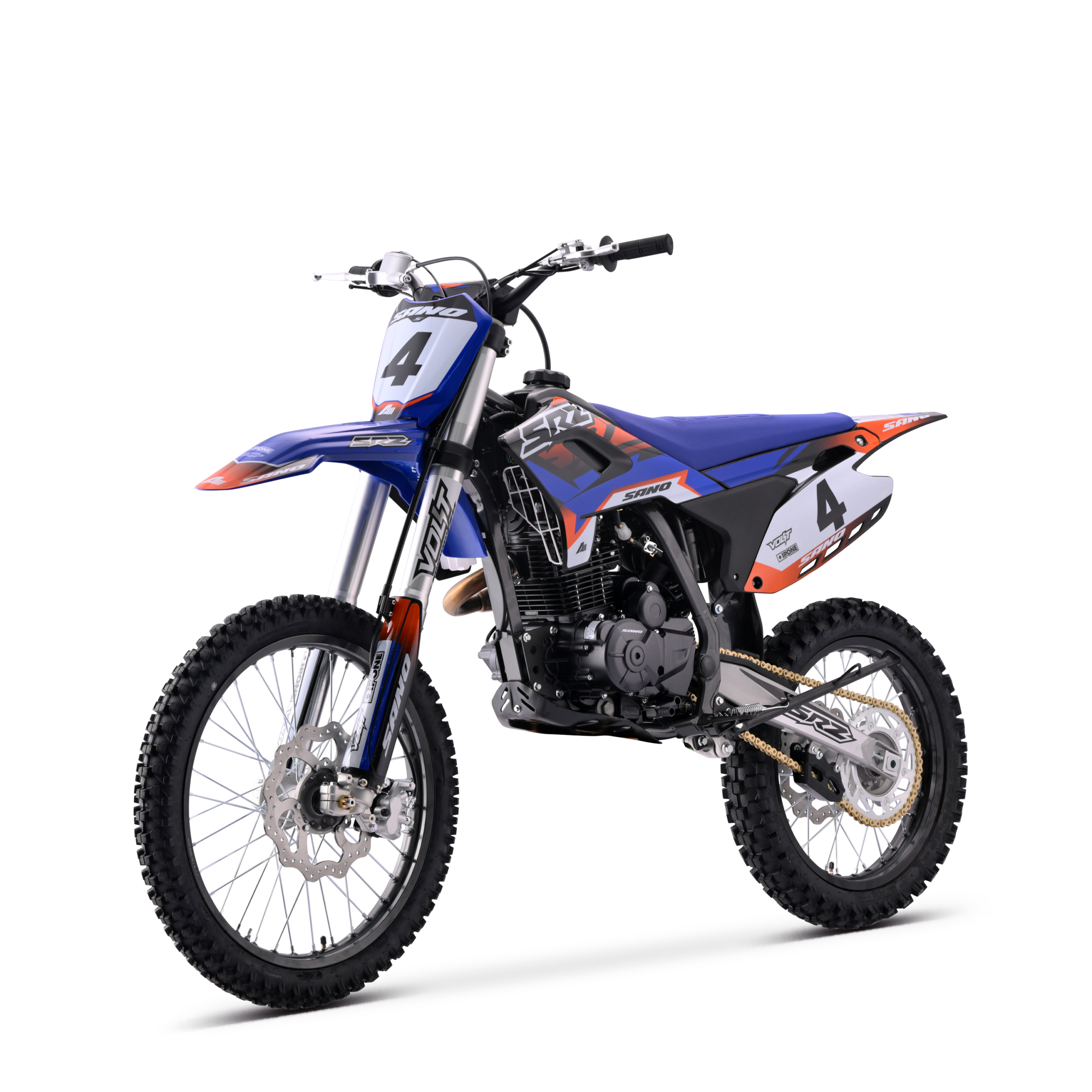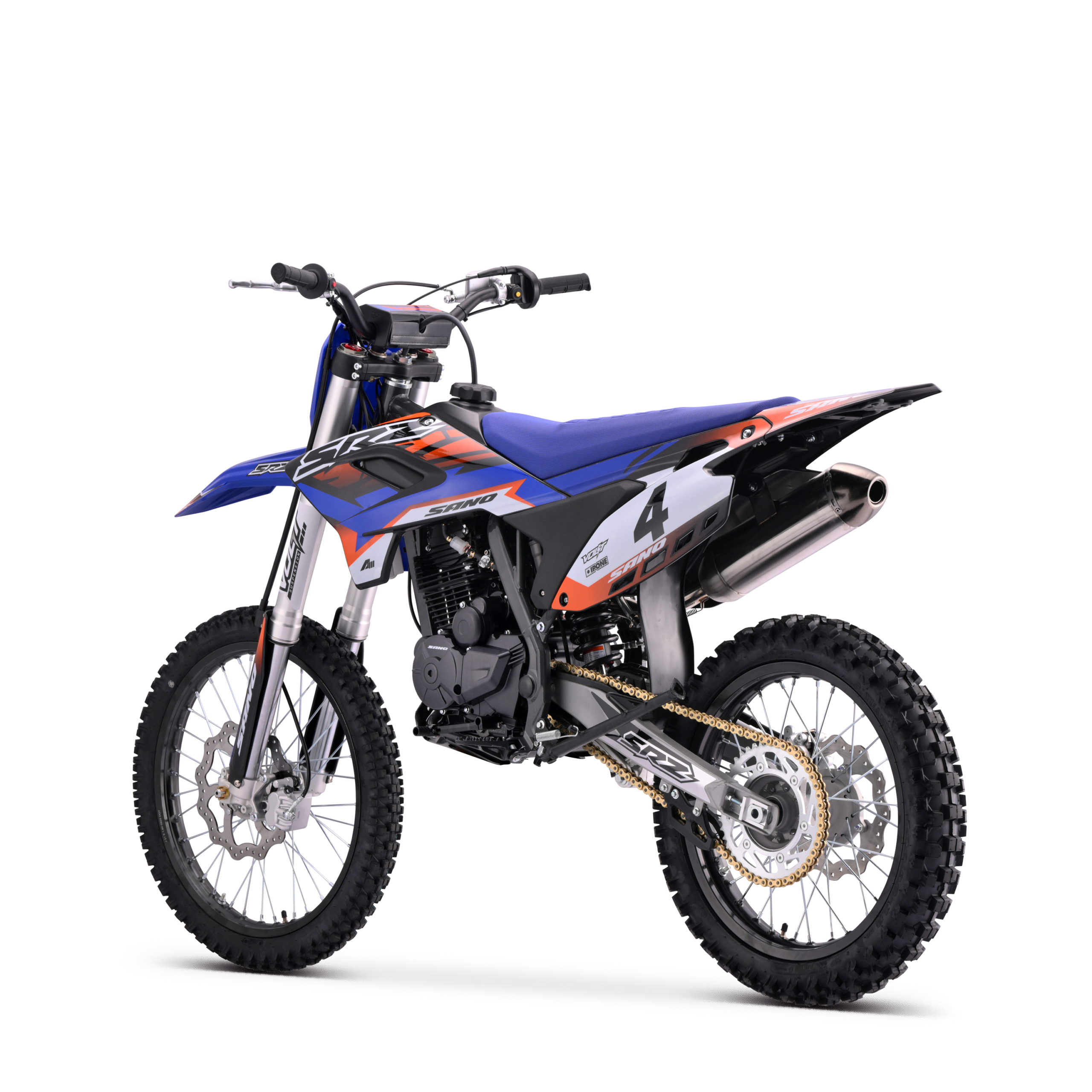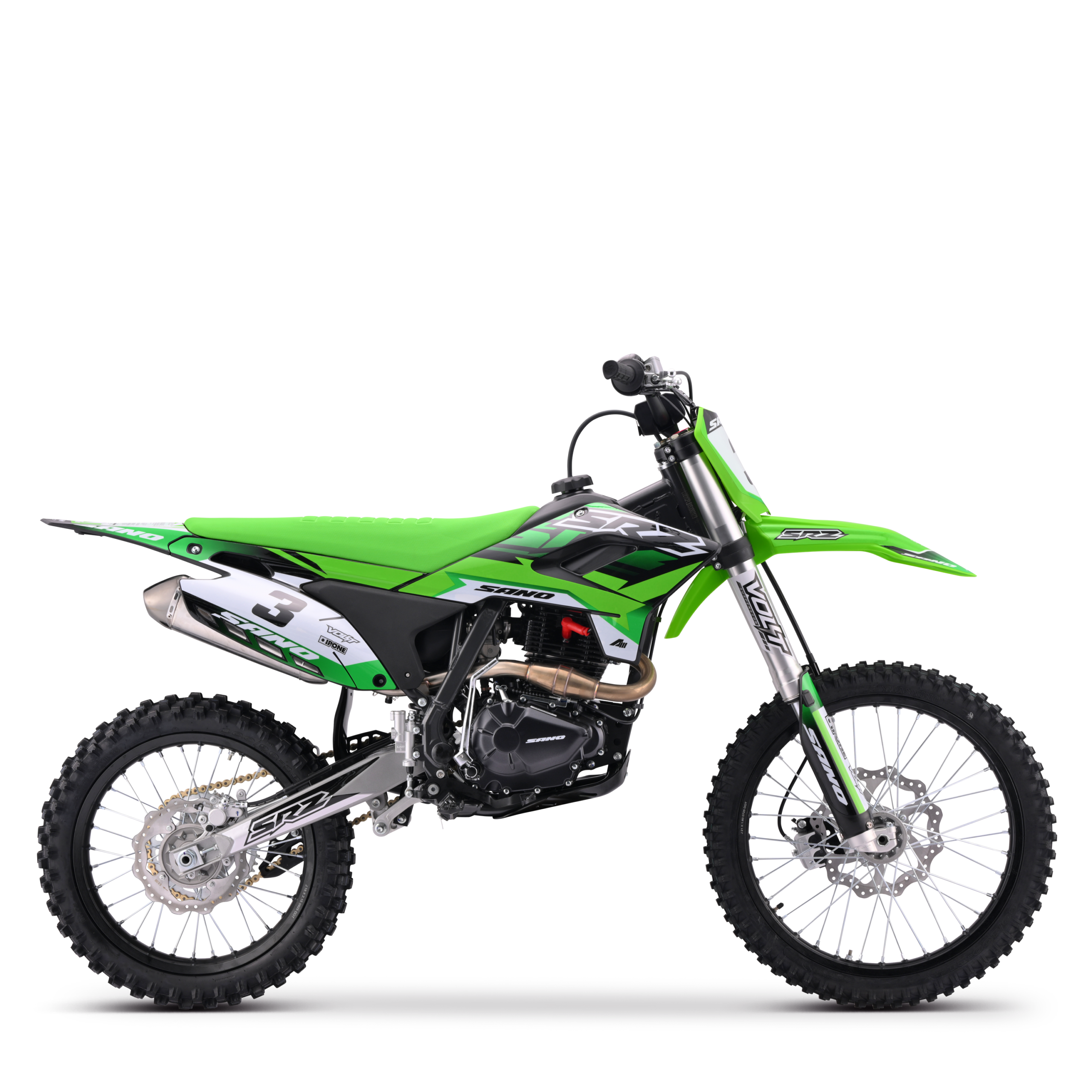 La Sano SRZ 300cc est destinée aux pilotes aguerris cherchant une expérience de pilotage intense et maîtrisée, quel que soit le terrain. Avec son identité visuelle propre et son moteur puissant de 300cc, elle incarne une motocross polyvalente, performante et aboutie.